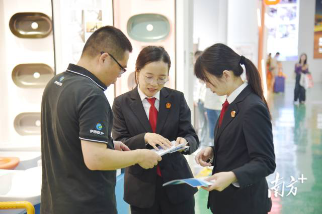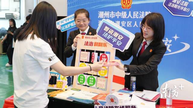 活动期间,潮安法院精心打造“法律体检仪”“法律导航仪”“法律宣讲器”“法律体检单”等“五大法治工具”,吸引众多参展商驻足。干警们一对一解答法律疑问,让企业“带着问题来,拿着办法走”;同时主动走进企业摊位,发放《潮安法院关于以高质量司法服务保障智能卫浴产业高质量发展的意见》《法律服务联系卡》等资料,实现法治保障与企业需求“零距离”对接。