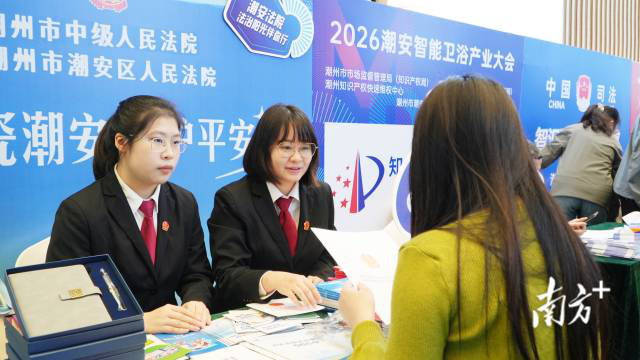 近日,“广货行天下”春季行动智能卫浴潮州专场暨2026潮安智能卫浴产业大会举行。潮州市中级人民法院联合潮安区人民法院组织干警走进会场,采用“固定服务台+流动巡展+一对一答疑”模式,将司法服务精准送到企业身边,为潮州智能卫浴产业创新智造与全球拓展筑牢法治屏障。