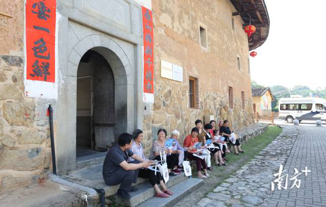 饶平法院饶洋法庭干警在土楼与群众围坐开展调解。