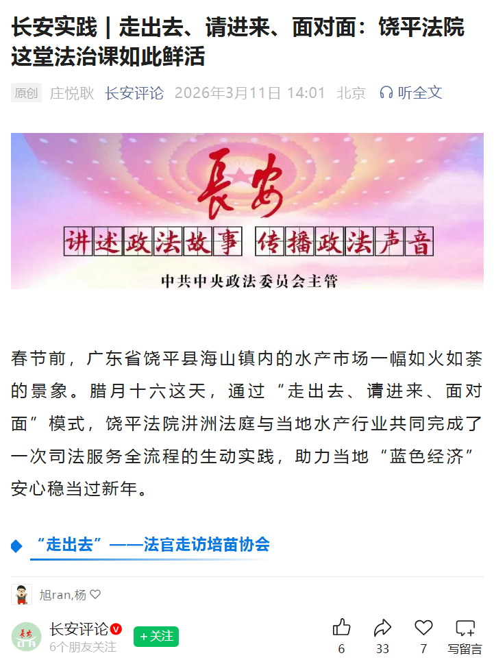长安评论:走出去、请进来、面对面:饶平法院这堂法治课如此鲜活