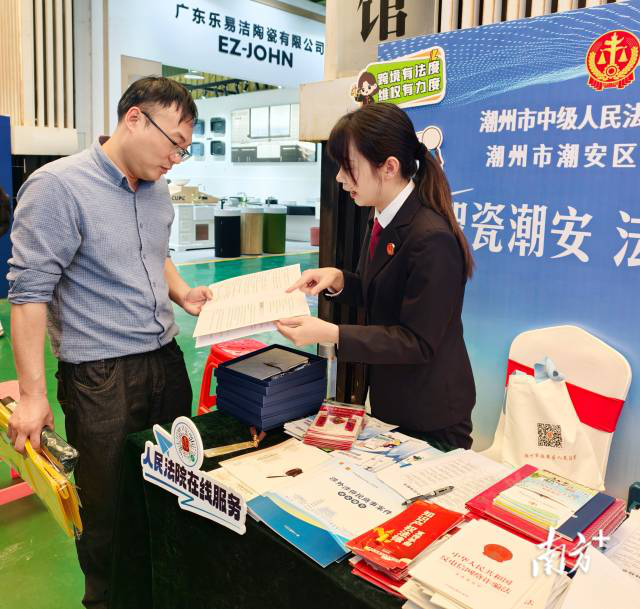 活动期间,潮安法院精心打造“法律体检仪”“法律导航仪”“法律宣讲器”“法律体检单”等“五大法治工具”,吸引众多参展商驻足。干警们一对一解答法律疑问,让企业“带着问题来,拿着办法走”;同时主动走进企业摊位,发放《潮安法院关于以高质量司法服务保障智能卫浴产业高质量发展的意见》《法律服务联系卡》等资料,实现法治保障与企业需求“零距离”对接。